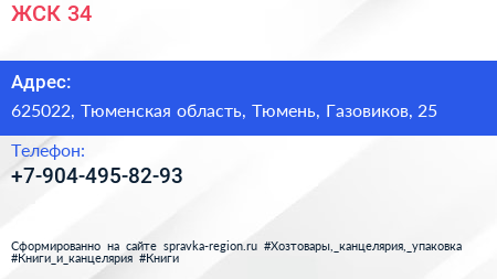 ЖСК №34 по адресу 625022, Тюменская область, Тюмень, Газовиков, 25 в дальнейшем Организация, размещена в следующих категориях: