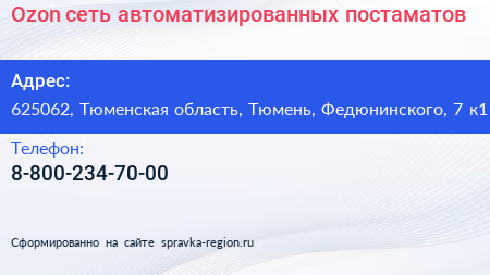 Ozon, сеть автоматизированных постаматов по адресу 625062, Тюменская область, Тюмень, Федюнинского, 7 к1 в дальнейшем Организация, размещена в следующих категориях: