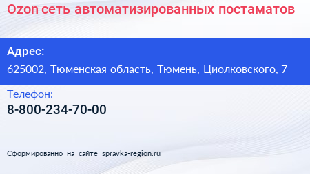 Ozon, сеть автоматизированных постаматов по адресу 625002, Тюменская область, Тюмень, Циолковского, 7 в дальнейшем Организация, размещена в следующих категориях: