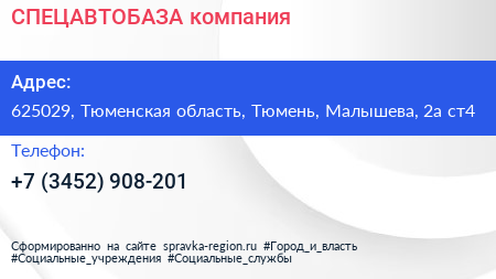 СПЕЦАВТОБАЗА, компания по адресу 625029, Тюменская область, Тюмень, Малышева, 2а ст4 в дальнейшем Организация, размещена в следующих категориях:
