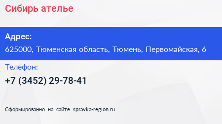 Сибирь, ателье по адресу 625000, Тюменская область, Тюмень, Первомайская, 6 в дальнейшем Организация, размещена в следующих категориях:
