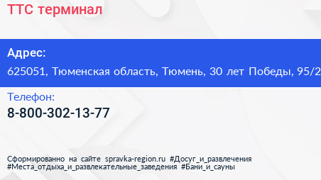 ТТС, терминал по адресу 625051, Тюменская область, Тюмень, 30 лет Победы, 95/2 в дальнейшем Организация, размещена в следующих категориях: