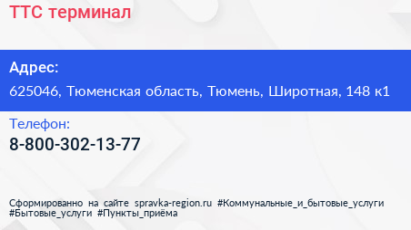 ТТС, терминал по адресу 625046, Тюменская область, Тюмень, Широтная, 148 к1 в дальнейшем Организация, размещена в следующих категориях: