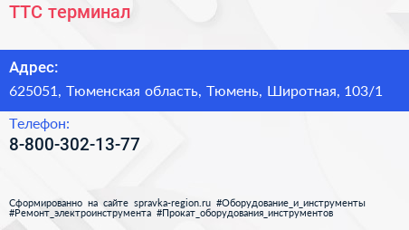 ТТС, терминал по адресу 625051, Тюменская область, Тюмень, Широтная, 103/1 в дальнейшем Организация, размещена в следующих категориях: