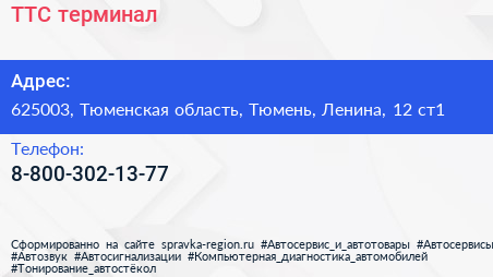 ТТС, терминал по адресу 625003, Тюменская область, Тюмень, Ленина, 12 ст1 в дальнейшем Организация, размещена в следующих категориях: