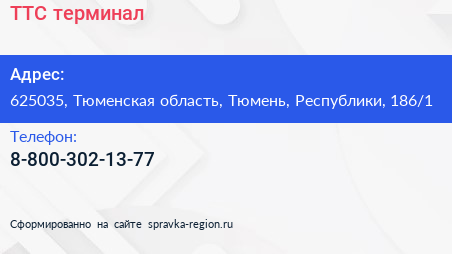 ТТС, терминал по адресу 625035, Тюменская область, Тюмень, Республики, 186/1 в дальнейшем Организация, размещена в следующих категориях: