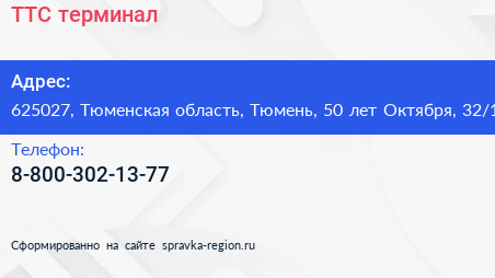 ТТС, терминал по адресу 625027, Тюменская область, Тюмень, 50 лет Октября, 32/1 в дальнейшем Организация, размещена в следующих категориях: