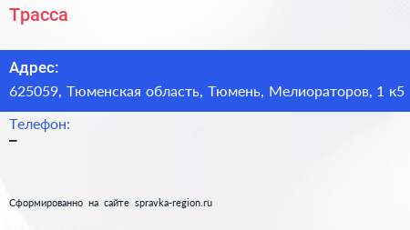 Трасса по адресу 625059, Тюменская область, Тюмень, Мелиораторов, 1 к5 в дальнейшем Организация, размещена в следующих категориях:
