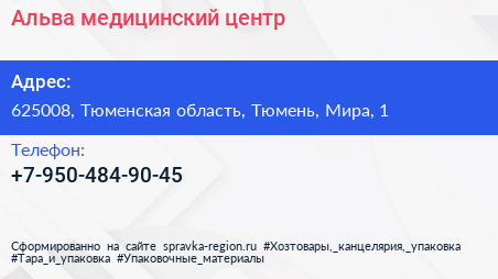 Альва, медицинский центр по адресу 625008, Тюменская область, Тюмень, Мира, 1 в дальнейшем Организация, размещена в следующих категориях: