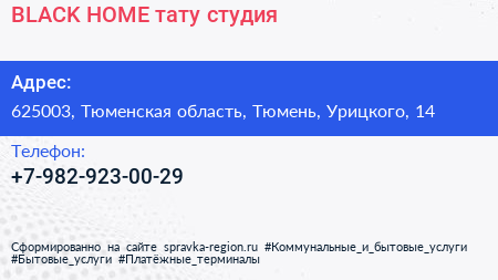 BLACK HOME, тату-студия по адресу 625003, Тюменская область, Тюмень, Урицкого, 14 в дальнейшем Организация, размещена в следующих категориях: