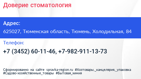 Доверие, стоматология по адресу 625027, Тюменская область, Тюмень, Холодильная, 84 в дальнейшем Организация, размещена в следующих категориях:
