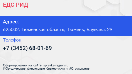 ЕДС РИД по адресу 625032, Тюменская область, Тюмень, Баумана, 29 в дальнейшем Организация, размещена в следующих категориях: