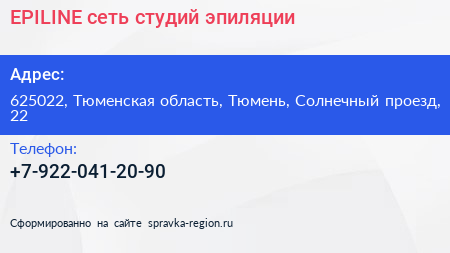 EPILINE, сеть студий эпиляции по адресу 625022, Тюменская область, Тюмень, Солнечный проезд, 22 в дальнейшем Организация, размещена в следующих категориях: