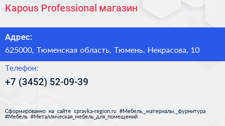 Kapous Professional, магазин по адресу 625000, Тюменская область, Тюмень, Некрасова, 10 в дальнейшем Организация, размещена в следующих категориях: