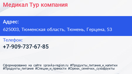 Медикал-Тур, компания по адресу 625003, Тюменская область, Тюмень, Герцена, 53 в дальнейшем Организация, размещена в следующих категориях: