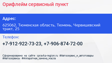 Орифлейм, сервисный пункт по адресу 625062, Тюменская область, Тюмень, Червишевский тракт, 25 в дальнейшем Организация, размещена в следующих категориях: