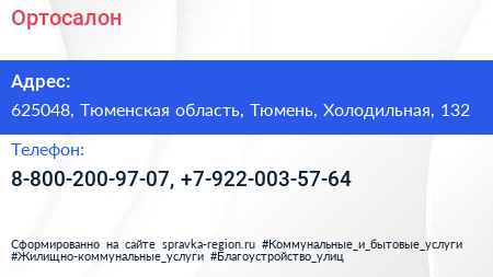 Ортосалон по адресу 625048, Тюменская область, Тюмень, Холодильная, 132 в дальнейшем Организация, размещена в следующих категориях: