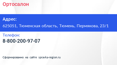 Ортосалон по адресу 625051, Тюменская область, Тюмень, Пермякова, 23/1 в дальнейшем Организация, размещена в следующих категориях: