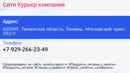 Сити Курьер, компания по адресу 625049, Тюменская область, Тюмень, Московский тракт, 142/3 в дальнейшем Организация, размещена в следующих категориях: