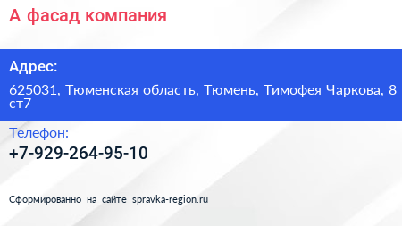 А-фасад, компания по адресу 625031, Тюменская область, Тюмень, Тимофея Чаркова, 8 ст7 в дальнейшем Организация, размещена в следующих категориях: