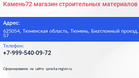 Камень72, магазин строительных материалов по адресу 625054, Тюменская область, Тюмень, Биатлонный проезд, 57 в дальнейшем Организация, размещена в следующих категориях: