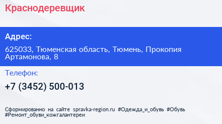 Краснодеревщик по адресу 625033, Тюменская область, Тюмень, Прокопия Артамонова, 8 в дальнейшем Организация, размещена в следующих категориях:
