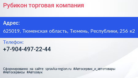Рубикон, торговая компания по адресу 625019, Тюменская область, Тюмень, Республики, 256 к2 в дальнейшем Организация, размещена в следующих категориях: