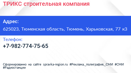 ТРИКС, строительная компания по адресу 625023, Тюменская область, Тюмень, Харьковская, 77 к3 в дальнейшем Организация, размещена в следующих категориях: