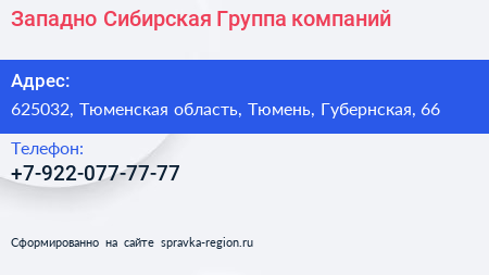 Западно-Сибирская Группа компаний по адресу 625032, Тюменская область, Тюмень, Губернская, 66 в дальнейшем Организация, размещена в следующих категориях: