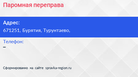 Паромная переправа по адресу 671251, Бурятия, Турунтаево, в дальнейшем Организация, размещена в следующих категориях: