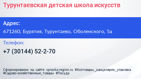 Турунтаевская детская школа искусств по адресу 671260, Бурятия, Турунтаево, Оболенского, 5а в дальнейшем Организация, размещена в следующих категориях: