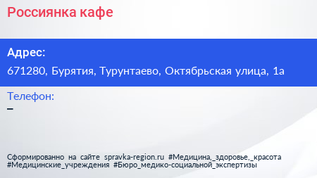 Россиянка, кафе по адресу 671280, Бурятия, Турунтаево, Октябрьская улица, 1а в дальнейшем Организация, размещена в следующих категориях: