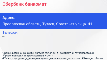 Сбербанк, банкомат по адресу Ярославская область, Тутаев, Советская улица, 41 в дальнейшем Организация, размещена в следующих категориях: