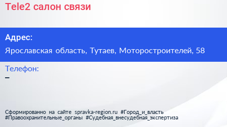 Tele2, салон связи по адресу Ярославская область, Тутаев, Моторостроителей, 58 в дальнейшем Организация, размещена в следующих категориях: