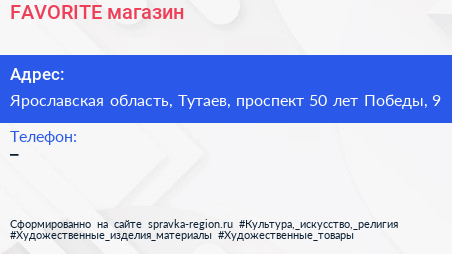 FAVORITE, магазин по адресу Ярославская область, Тутаев, проспект 50 лет Победы, 9 в дальнейшем Организация, размещена в следующих категориях: