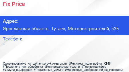 Fix Price по адресу Ярославская область, Тутаев, Моторостроителей, 53Б в дальнейшем Организация, размещена в следующих категориях: