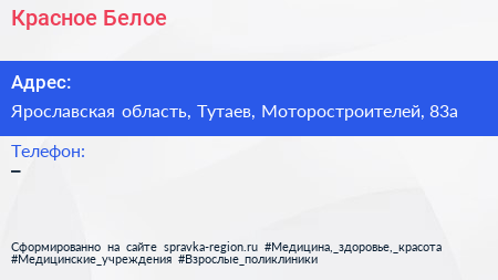 Красное & Белое по адресу Ярославская область, Тутаев, Моторостроителей, 83а в дальнейшем Организация, размещена в следующих категориях: