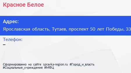 Красное & Белое по адресу Ярославская область, Тутаев, проспект 50 лет Победы, 33 в дальнейшем Организация, размещена в следующих категориях: