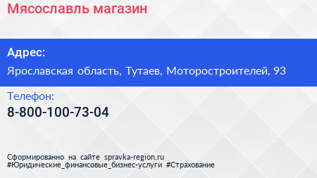 Мясославль, магазин по адресу Ярославская область, Тутаев, Моторостроителей, 93 в дальнейшем Организация, размещена в следующих категориях: