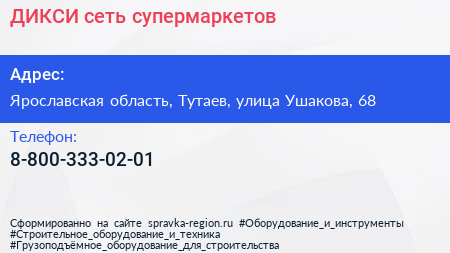 ДИКСИ, сеть супермаркетов по адресу Ярославская область, Тутаев, улица Ушакова, 68 в дальнейшем Организация, размещена в следующих категориях: