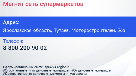 Магнит, сеть супермаркетов по адресу Ярославская область, Тутаев, Моторостроителей, 56а в дальнейшем Организация, размещена в следующих категориях:
