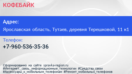 КОФЕБАЙК по адресу Ярославская область, Тутаев, деревня Терешковой, 11 к1 в дальнейшем Организация, размещена в следующих категориях: