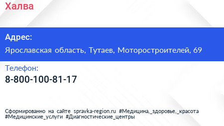 Халва по адресу Ярославская область, Тутаев, Моторостроителей, 69 в дальнейшем Организация, размещена в следующих категориях: