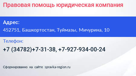 Правовая помощь, юридическая компания по адресу 452751, Башкортостан, Туймазы, Мичурина, 10 в дальнейшем Организация, размещена в следующих категориях: