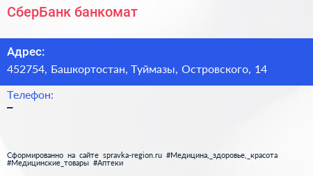СберБанк, банкомат по адресу 452754, Башкортостан, Туймазы, Островского, 14 в дальнейшем Организация, размещена в следующих категориях: