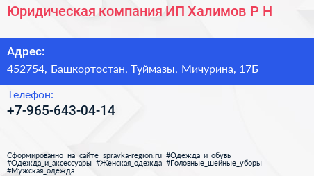 Юридическая компания, ИП Халимов Р.Н. по адресу 452754, Башкортостан, Туймазы, Мичурина, 17Б в дальнейшем Организация, размещена в следующих категориях: