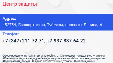 Центр защиты по адресу 452754, Башкортостан, Туймазы, проспект Ленина, 6 в дальнейшем Организация, размещена в следующих категориях: