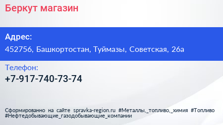 Беркут, магазин по адресу 452756, Башкортостан, Туймазы, Советская, 26а в дальнейшем Организация, размещена в следующих категориях: