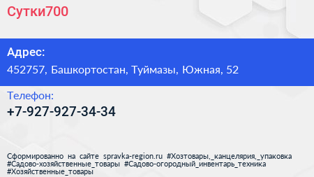 Сутки700 по адресу 452757, Башкортостан, Туймазы, Южная, 52 в дальнейшем Организация, размещена в следующих категориях:
