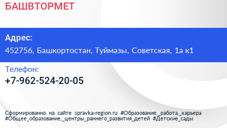 БАШВТОРМЕТ по адресу 452756, Башкортостан, Туймазы, Советская, 1а к1 в дальнейшем Организация, размещена в следующих категориях: